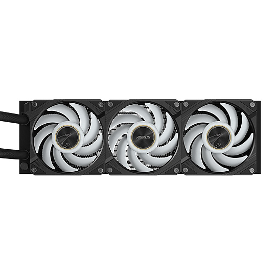 - Vodný blok a ventilátor majú gradientné osvetlenie a osvetlenie ventilátora ARGB je možné synchronizovať s ostatnými zariadeniami AORUS prostredníctvom GCC (GIGABYTE Control Center).