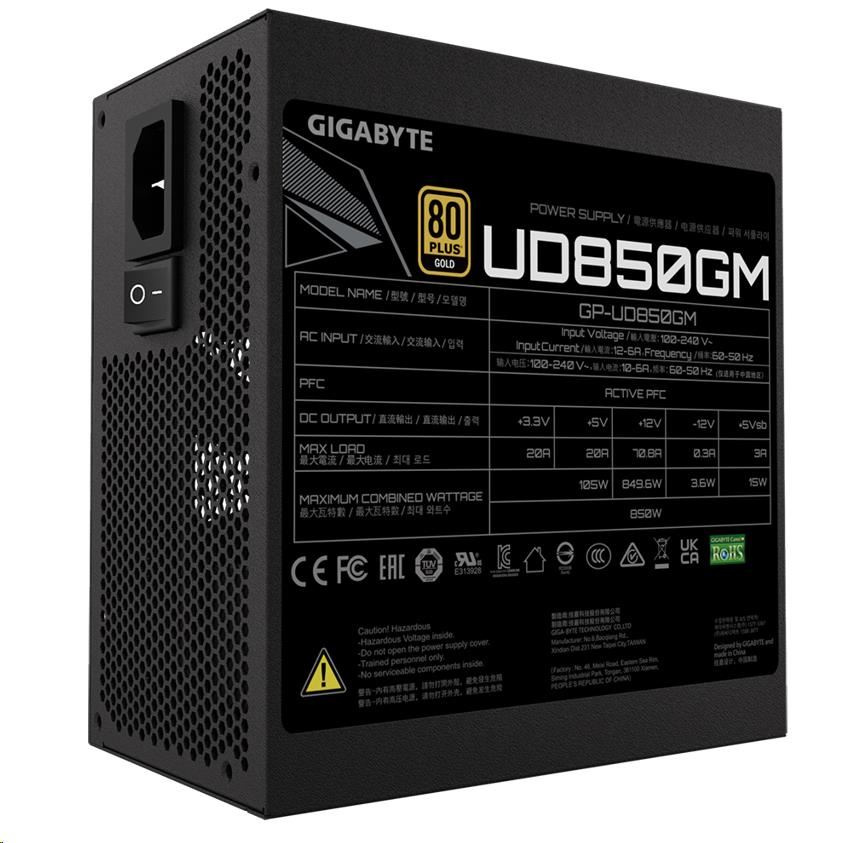 BAZAR - GIGABYTE zdroj UD850GM, 850W, 80+ Gold, 120mm fan - Po opravě (Bez příšlušenství)