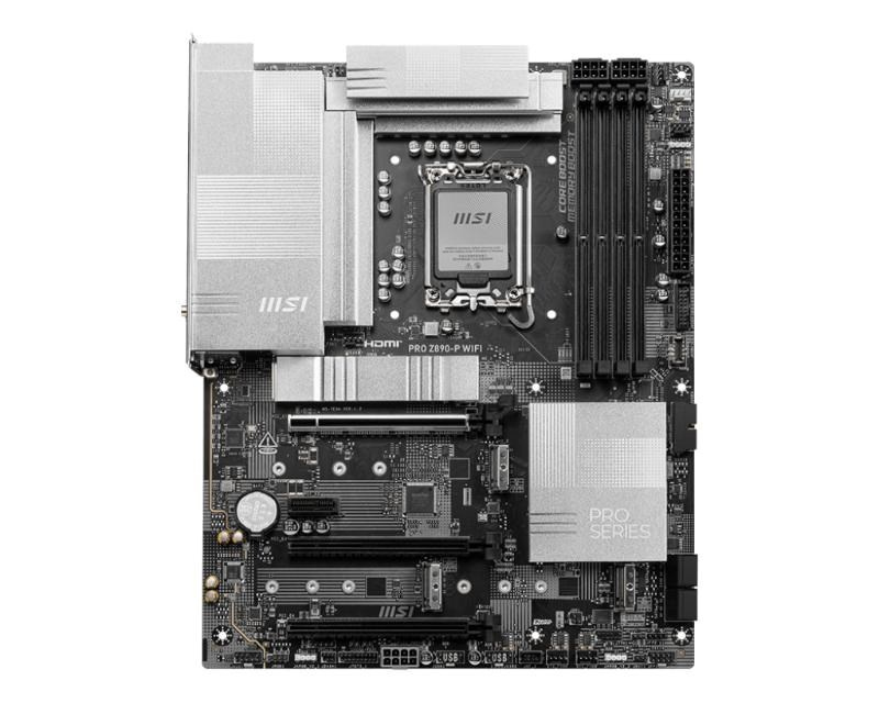 PRO Z890-P WIFI ponúka jednoduchý dizajn s harmonickou striebornou farbou, ktorá dokonale ladí s bielymi aj čiernymi PC zostavami. Je navrhnutá s mnohými exkluzívnymi funkciami MSI, true Wi-Fi 7 s EZ Antenna, 5G LAN, Thunderbolt 4, PCIe 5.0 M.2 s EZ M.2 Shield Frozr II, a doplnkovým PCIe napájaním, pripravená na procesory Intel® Core™ Ultra.