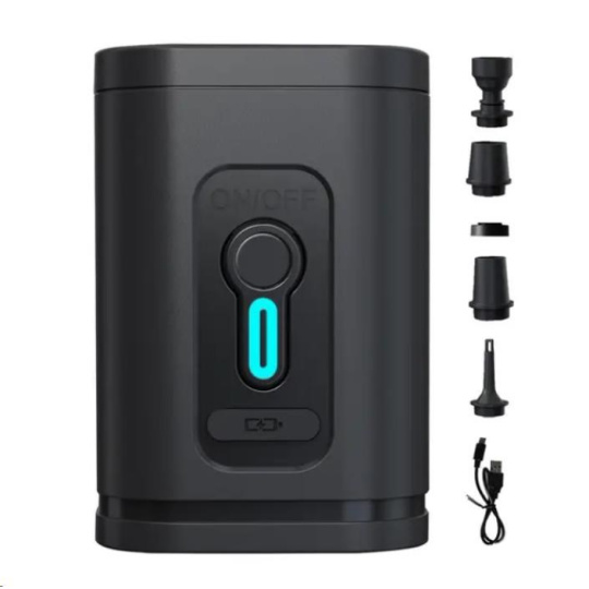 - Súčasťou balenia nabíjací USB-C kábel; adaptéry pre vakuové kapsy, gumové matrace/kruhy/hracky/lodky/bazény