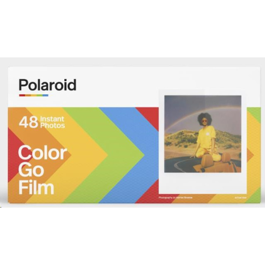 Go Film Multipack 48 fotografií Ideme, ideme, končíme. Trojité balenie filmu Polaroid Go, aby vám na cestách nedošlo. V balení je 48 malých farebných fotografií na okamžité zachytenie veľkých nápadov. Každé balenie obsahuje 48 farebných instantných fotografií s lesklým bielym rámikom pripravených na použitie. Exkluzívne pre použitie s fotoaparátmi Polaroid Go. Veľkosť: 66,6 × 53,9 mm / veľkosť snímky: 47 × 46 mm Biely rámik ASA 640 Vyvíjanie fotografie do 10–15 minút Najlepšie uchovávať v chladničke Expozícia 48 Veľkosť filmu 46x47mm, 1,85x1,81” Typ filmu Instantný ISO filmu 640