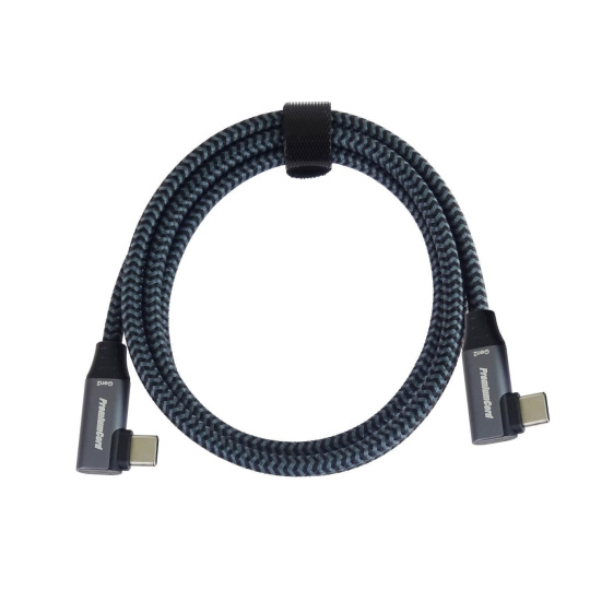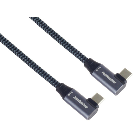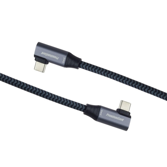 PremiumCord USB-C 2x zahnutý 90° kábel ( USB 3.2 GEN 2x2, 5A, 100W, 20Gbit/s ) hliníkové krytky konektorov, bavlnený opletenie, 0,5m