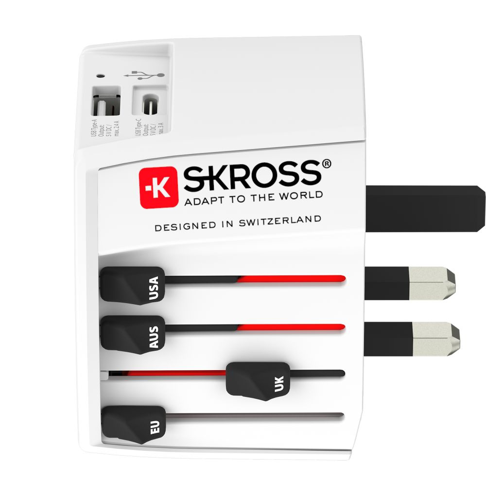 BAZAR - SKROSS cestovní adaptér MUV USB, USB A+C, univerzální pro 150 zemí - Poškozený obal (Komplet)