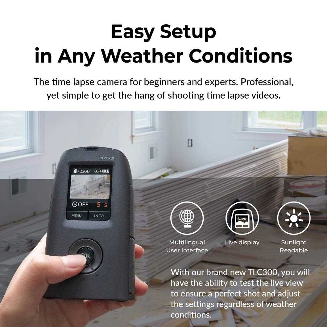 Kamera TLC300 je vybavená revolučným jednostránkovým dizajnom na nastavenie parametrov časozberného snímania, ktorý integruje plán, interval snímania a nastavenie obrazu do prehľadného menu, čo z nej činí používateľsky najpohodlnejšiu profesionálnu časozbernú kameru.