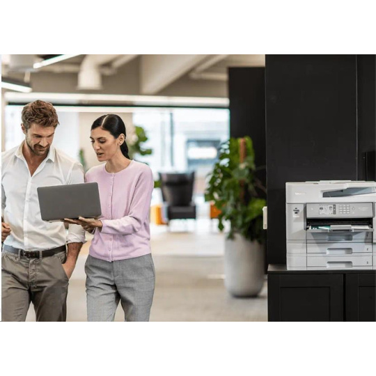 Tlač, skenovanie, kopírovanie a faxovanie vo formáte A3 v prvotriednej kvalite v jednom atramentovom zariadení. Táto multifunkčná tlačiareň je dodávaná s najnovšou technológiou tlačovej hlavy, ktorá zabezpečuje rýchly, odolný a žiarivý farebný tlač. Multifunkčná tlačiareň MFC-J6957DW kombinuje veľkú vstupnú kapacitu papiera, energetickú úspornosť a krátku dobu vytlačenia prvej strany. Predstavuje skvelú voľbu pre firmy, ktoré hľadajú profesionálne a ekologicky šetrné zariadenie.