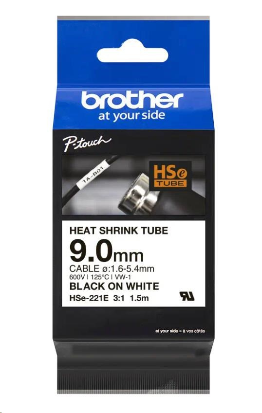 BROTHER smršťovací bužírka - HSE-221E bílá pro E300VP H300 H500 E550 P700 P750 D800 P900 P950 - 9,0 mm/ 1,6-5,4 / 3:1