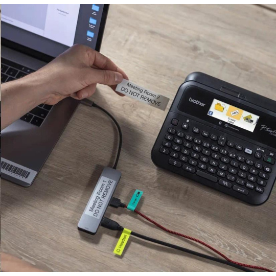 Vytvárajte štítky pomocou vstavaného klávesnice, stiahnite si aplikáciu Brother iPrint&Label a pripojte sa k mobilnému zariadeniu/tabletu, alebo sa pripojte k počítaču cez USB pre ďalšie funkcie návrhu štítkov pomocou softvéru P-touch Editor. Ideálne pre samostatné použitie - s integrovanou QWERTY klávesnicou a veľkým grafickým displejom s náhľadom tlače je stolový model PT-D610BT používateľsky prívetivý a navrhnutý pre jednoduché použitie, rýchle zadávanie textu a optimálne manipulovanie.