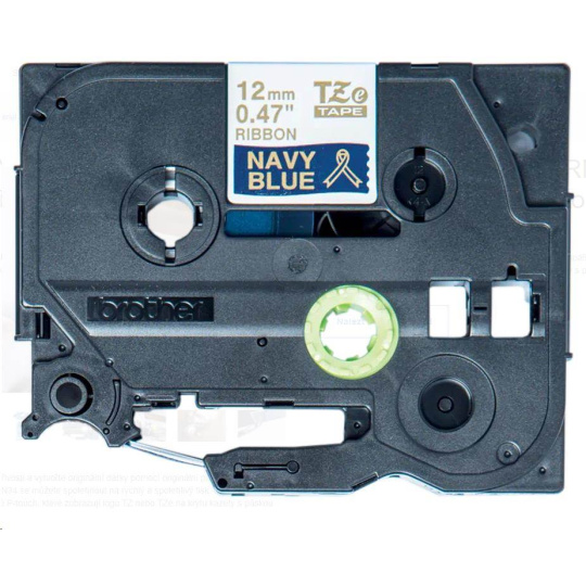 BROTHER TZE-RN34 - 12 mm široká TZ kazeta, TEXTILNÁ páska 4 m - na výrobu darčekov - NEPRIĽAHLÁ - MODRÁ PÁSKA, ZLATÝ POTISK