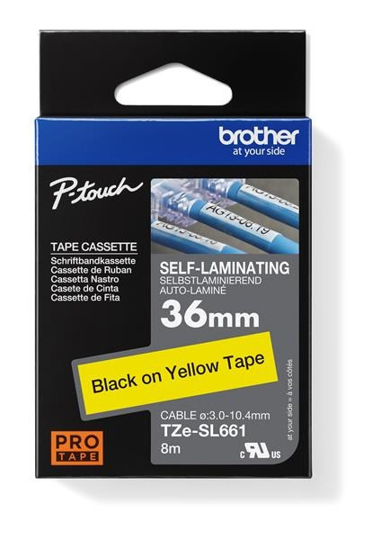 Samolepiaca páska TZe-SL661 s dĺžkou 36 mm s čiernym tlačom na žltej bola vyvinutá pre dlhodobú identifikáciu sieťových káblov. Má špeciálne lepiace vlastnosti štítkov pre trvácne pevné obmotanie okolo vašich vodičov a káblov. Kompatibilná s niektorými modelmi P-touch, ktoré používajú pásky TZe 36 mm.