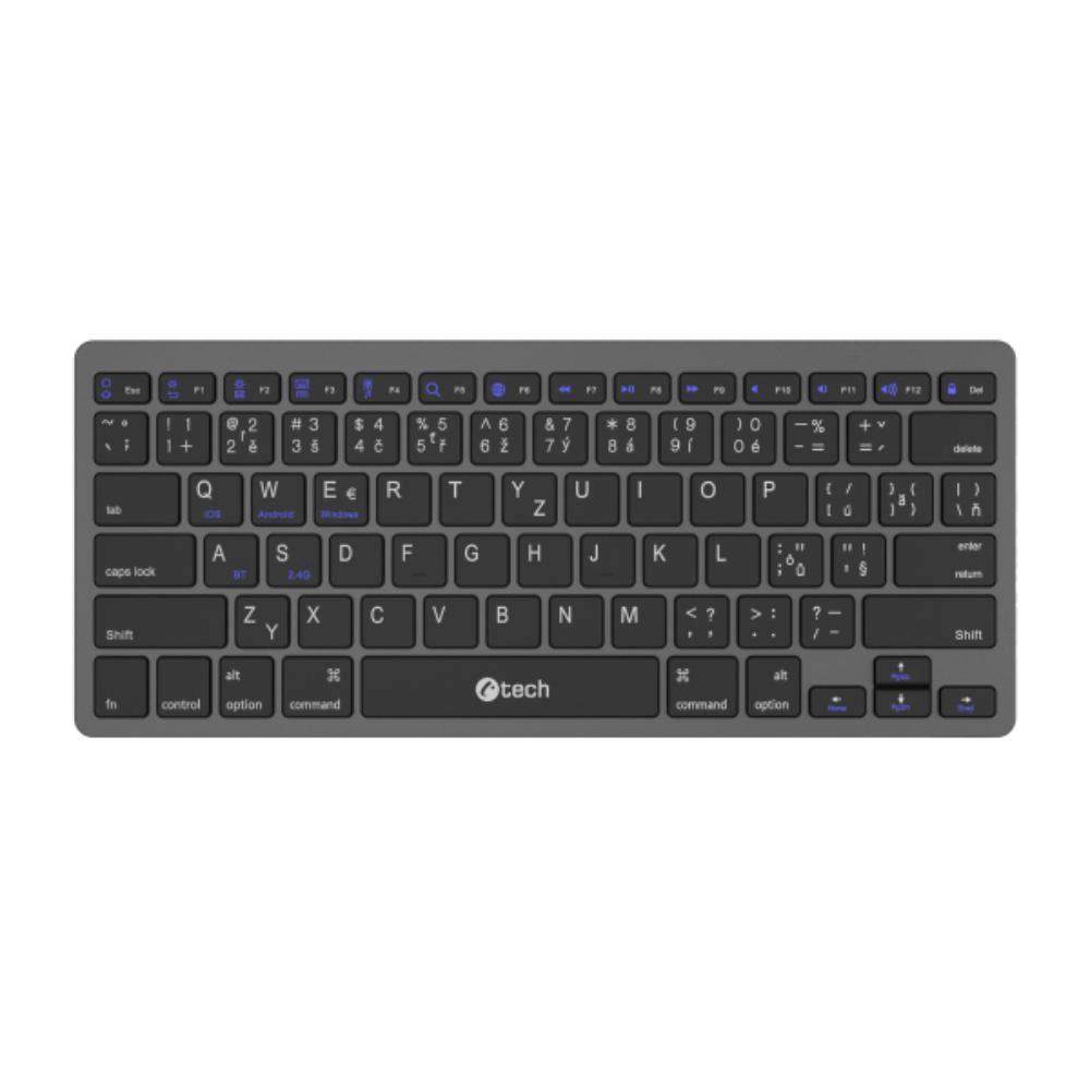 C-TECH Klávesnice KB-120S Dual mode, bezdrátová, BT5.0 + 2,4GHz, USB nano receiver, CZ/SK
