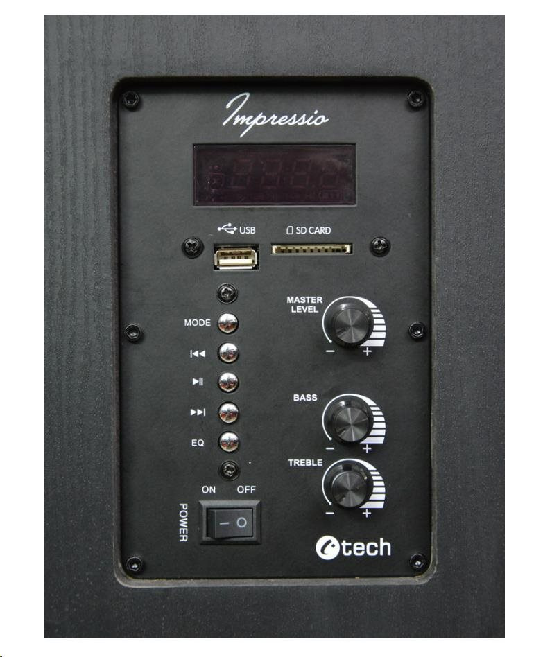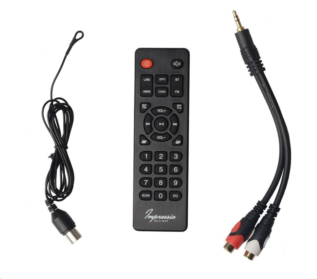 V pohodlí obývačky pravdepodobne nebudete sedieť priamo pred reproduktorom, takže na jeho ovládanie budete častejšie používať priložený diaľkový ovládač. Zvládne väčšinu funkcií, ako napríklad: nastavenie hlasitosti, výber skladby alebo stanice FM, spustenie a pozastavenie prehrávania alebo výber zdroja zvuku medzi rozhraním Bluetooth, rádiom FM, pamäťou USB alebo kartou SD a vstupom LINE-IN, optickým a koaxiálnym vstupom.