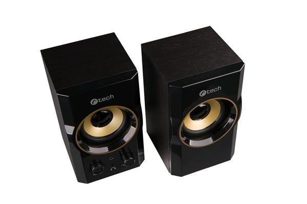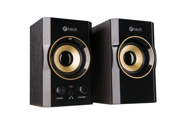 C-TECH repro SPK-11, 2.0, drevený, čierno-zlatý, USB