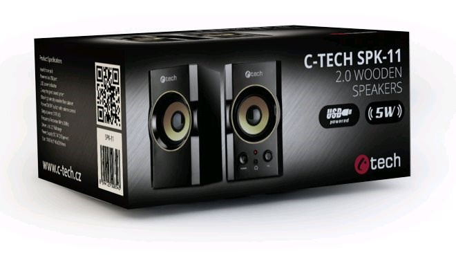 Drevené reproduktory SPK-11 v elegantnom čierno-zlatom vyhotovení vás prekvapia hlasným a čistým zvukom s výkonom 5 W RMS. Sú skvelou voľbou nielen pre tých, ktorí si nevedia vystačiť so zabudovanými reproduktormi vo svojom notebooku. Nabíjajú sa zo štandardného portu USB a ponúkajú aj ovládanie na prednom paneli a výstup na slúchadlá.