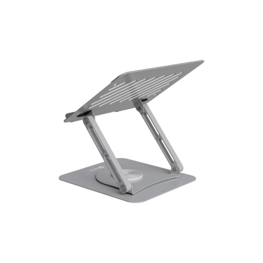Quallis NTS-200 podporuje notebooky až do veľkosti 16" a jeho pevná hliníková konštrukcia zabezpečuje vysokú odolnosť, nosnosť a elegantný vzhľad. Na rozdiel od bežných stojanov je vybavený otočnou základňou s 360° otáčaním, čo umožňuje plynulé natáčanie notebooku bez nutnosti premiestňovania celej konštrukcie – ideálne pri prezentáciách, zdieľaní obrazovky alebo striedavej práci viacerých používateľov.
