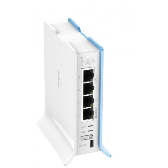 hAP lite je nový smerovač (AP) navrhnutý špeciálne pre domácnosti a malé kancelárie. Nabíjanie 2.4GHz WiFi s 802.11 b/g/n s tlačidlom WPS na jednoduché pripojenie klientov bez znalosti hesla. Procesor je taktovaný na 650 MHz a je podporovaný 32 MB pamäte DDR RAM. K dispozícii sú celkovo štyri 100Mb/s ethernetové porty s funkciou Auto-MDI/X. Napájanie prebieha cez port microUSB, ktorý je určený výhradne na tento účel, nie na prenos dát. Napájací adaptér je súčasťou balenia.