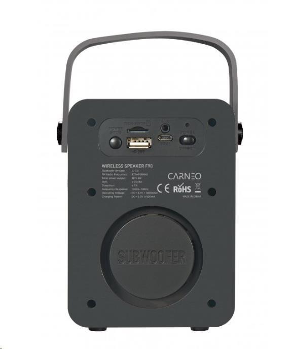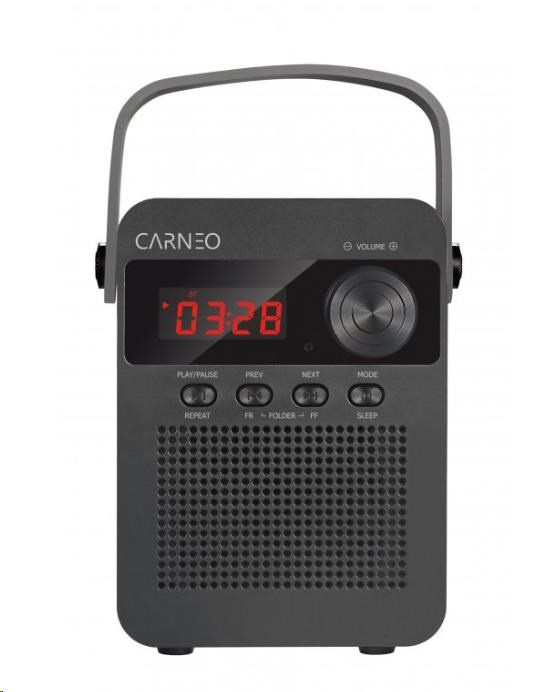 CARNEO F90 je kompaktné prenosné rádio s hodinami a budíkom, Bluetooth konektivitou a s integrovanými portami USB aj microSD, takže okrem rádia máte ďalšiu možnosť, ako prehrávať hudbu.