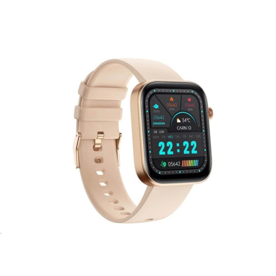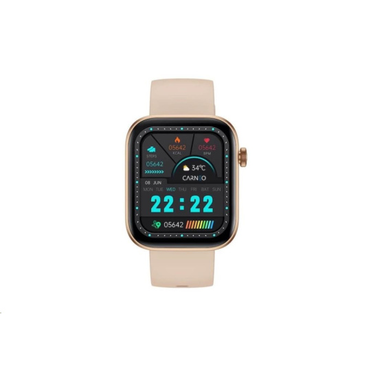 Moderné fitness hodinky Carneo Zenith HR+ v elegantnej zlatej farbe sú vybavené farebným displejom IPS, ktorý je možné aktivovať len otočením ruky. Merať môžu telesnú teplotu, krvný tlak, okysličenie krvi, srdcový tepe, prejdenú vzdialenosť, monitorujú spálené kalórie a kvalitu spánku. Súčasťou je batéria s výdržou cca 2-4 dni. Podľa certifikácie IP67 sú odolné voči vode a prachu. Hodinky s podporou technológie Bluetooth sú kompatibilné s operačnými systémami iOS a Android. Silikónový náramok s kovovou sponou je príjemný na dotyk a zaručuje komfort počas celého dňa.