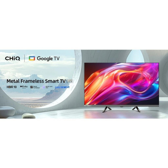 CHiQ 32“ L32M9E, kovová bezrámečková Smart Google TV s HDR10, HLG, HD obrazovkou s rozlíšením, Dolby Audio a vylepšeným zvukom dbx-tv.