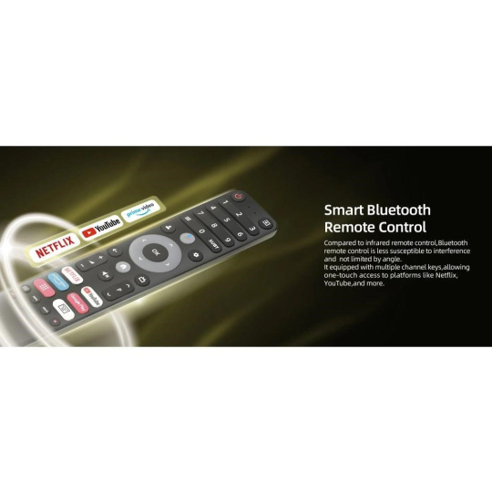 Diaľkové ovládanie je tiež vyrobené z materiálov najvyššej kvality. Zabezpečí rýchlu a príjemnú komunikáciu s televízorom. Vyhradené tlačidlá na Netflix, Youtube, Google Play alebo Prime Video vás rýchlo dostanú k obsahu, ktorý hľadáte.