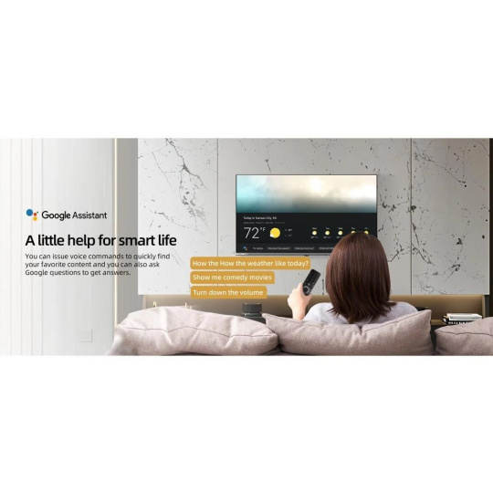 Použite diaľkové ovládanie a vyhľadávajte obsah, ktorý vás zaujíma, jednoducho hlasom. Google Asistent vám pomôže skontrolovať počasie, vyhľadať filmy alebo televízne programy. Stačí sa len spýtať. Získate rýchly prístup k zábave, odpovie na vaše otázky. Hlasom môžete ovládať ďalšie chytré zariadenia v domácnosti. Stačí stlačiť tlačidlo "Google Assistant" na vašom diaľkovom ovládači a odovzdať pokyn.