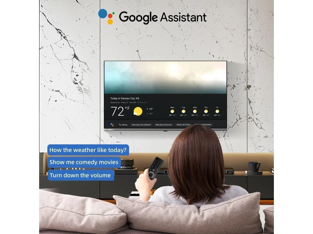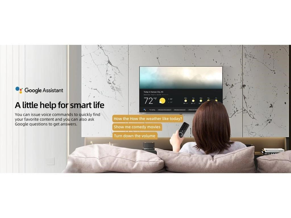 Použite diaľkové ovládanie a vyhľadávajte obsah, ktorý vás zaujíma, jednoducho hlasom. Google Asistent vám pomôže skontrolovať počasie, vyhľadať filmy alebo televízne programy. Stačí sa len spýtať. Získate rýchly prístup k zábave, odpovie na vaše otázky. Hlasom môžete ovládať ďalšie chytré zariadenia v domácnosti. Stačí stlačiť tlačidlo "Google Assistant" na vašom diaľkovom ovládači a odovzdať pokyn.