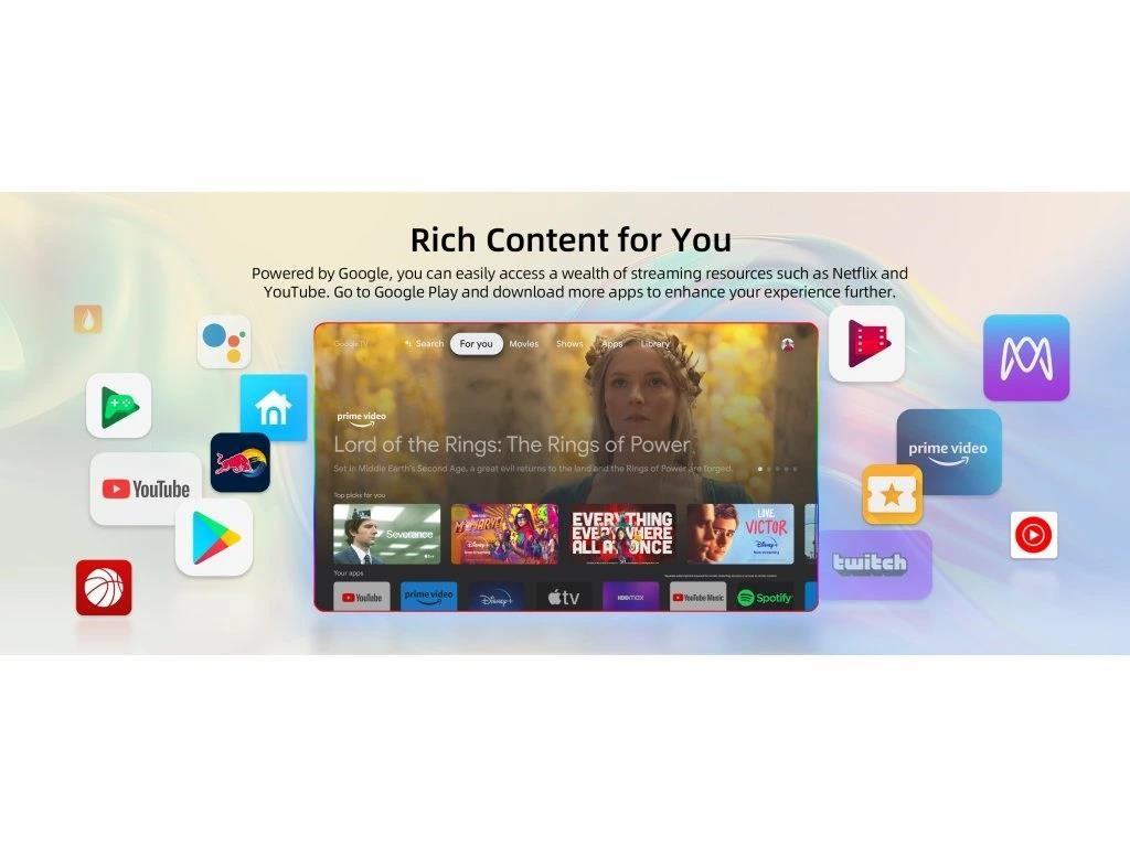 | Aplikácie | YouTube, Netflix, Prime Video, Google Play, O2 TV |