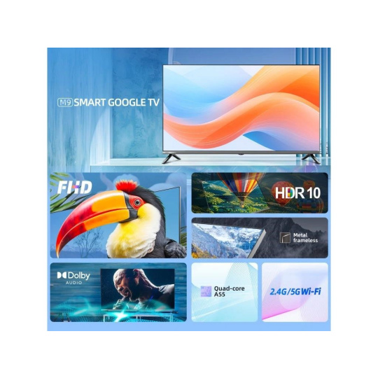 CHiQ 40“ L40M9E, metalická bezrámová Smart Google TV s HDR10, HLG, obrazovkou s Full HD s rozlíšením 1920 x 1080 pixelov, Dolby Audio a vylepšeným zvukom dbx-tv.