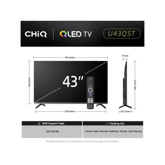 CHiQ U43QST TV 43", UHD, QLED, ultratenká, Google TV, DLG 120 Hz, Dolby Audio, Frameless, metalická