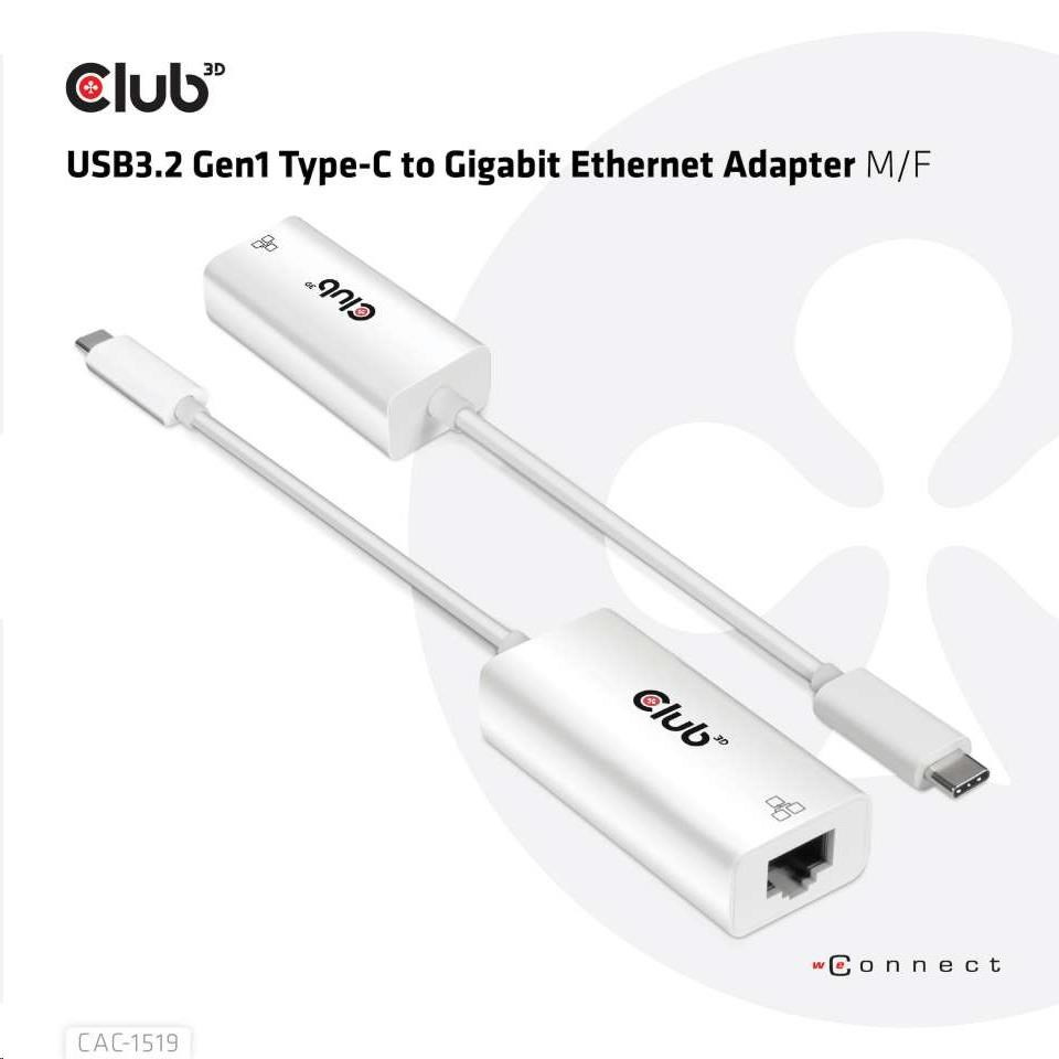 Club 3D CAC-1519 je USB3.2 Adaptér GEN1 Type-C na gigabitový Ethernet. Umožňuje vášmu novému MacBooku Pro, ChromeBooku alebo inému hostiteľskému počítaču s podporou USB-C získať prístup k rýchlej sieti Ethernet pripojením portu Gigabit Ethernet. Ethernetový adaptér je kompaktný a veľmi dobre prenosný. Adaptér je napájaný z portu USB C, nevyžaduje externé napájanie a je ideálny na použitie s notebookmi a ultrabookmi.