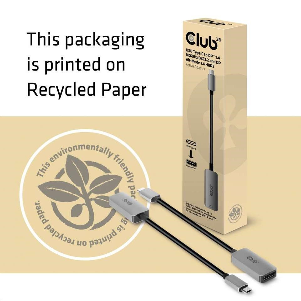 Club3D Aktívny adaptér USB-C na DisplayPort 1.4, 8K60Hz DSC1.2 HDR HBR3