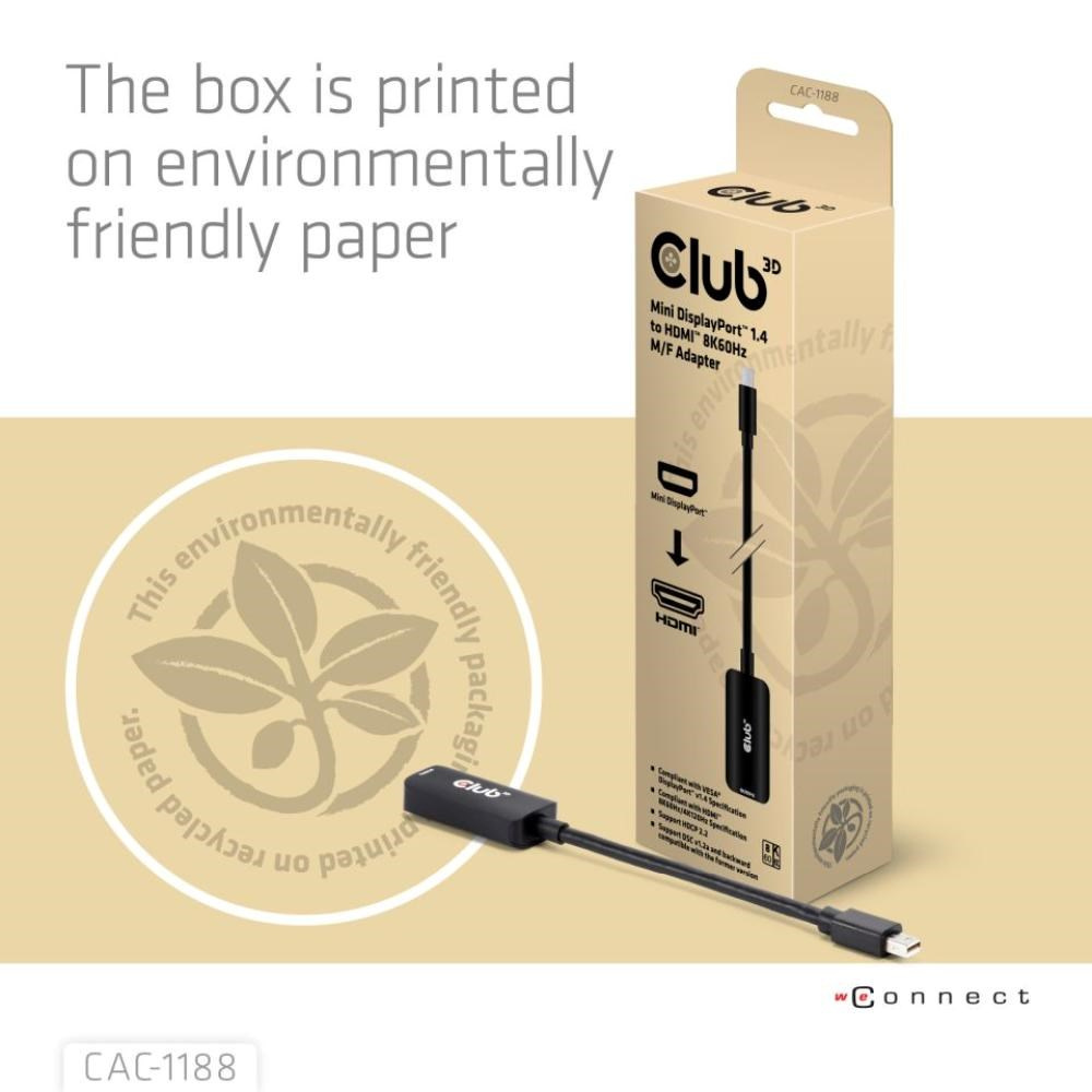 Club3D Adaptér miniDP 1.4 na HDMI, 4K120Hz nebo 8K60Hz HDR10+, M/F, 9cm