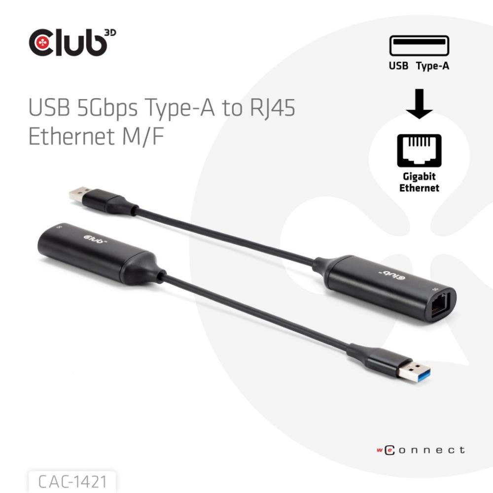 Club3D Adaptér USB-A na RJ45, 5Gb, 24cm