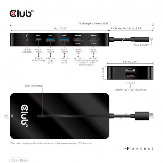 - Support HDMI™ max 4K@30Hz from the integrated chipset in the dock - make sure to install the driver from our website at www.club-3d.com