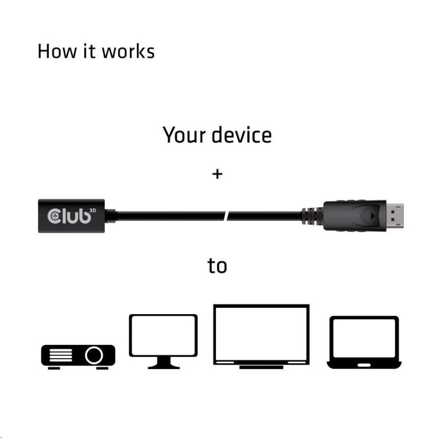 Club3D Prodlužovací kabel Mini DisplayPort 1.4 na DisplayPort 8K 60Hz DSC 1.2 HBR3 HDR Bidirectional (F/M), 1m