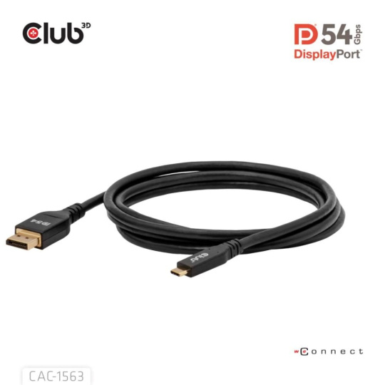 Club 3D CAC-1563 USB-C na DisplayPort 2.1 DP54 kábel umožňuje pripojiť váš USB-C notebook k monitoru s rozhraním DisplayPort. Kábel možno tiež použiť opačne – pomocou DisplayPort výstupu na vašej grafickej karte môžete pripojiť monitor s USB-C vstupom.