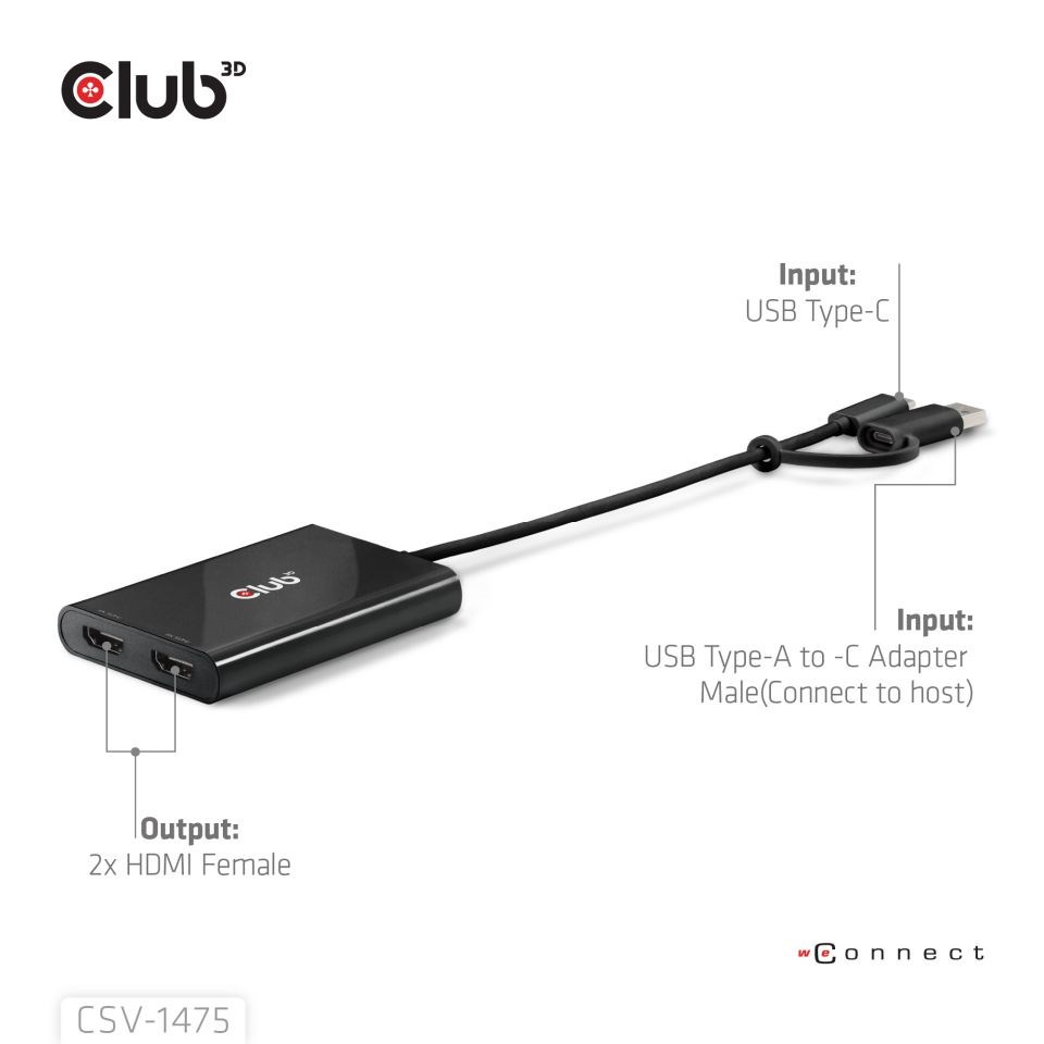 Club3D Video rozbočovač USB-C/A na 2xHDMI 2.0, Dual Monitor, 4K60Hz (M/F)