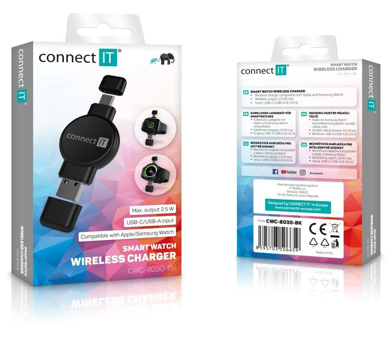 CONNECT IT Bezdrátová nabíječka WatchTravelCharge pro Apple a Samsung Watch, Černá