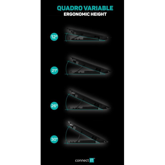 - Nastaviteľná výška v 4 rôznych stupňoch (12°, 21°, 26° a 30°)