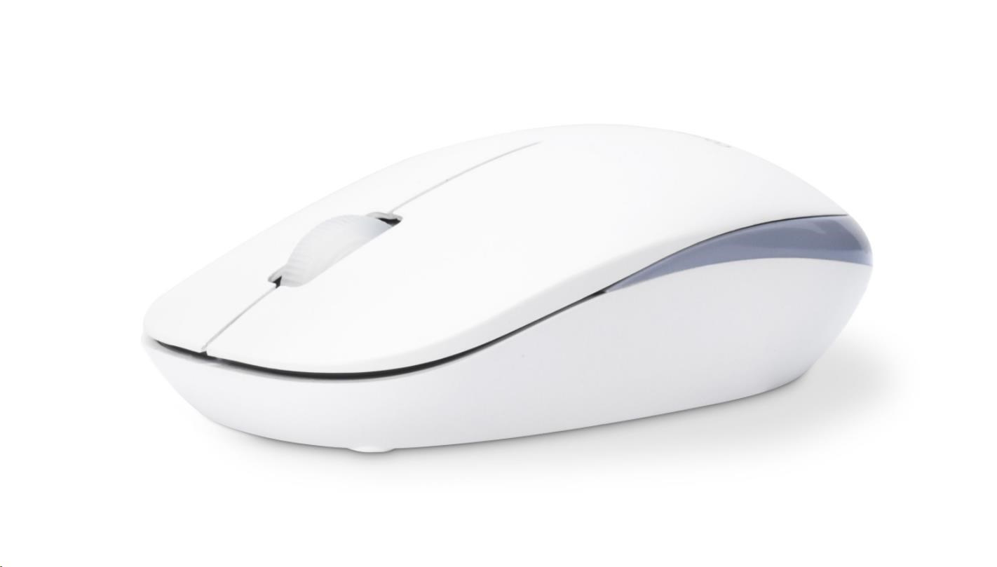 Súprava bezdrôtovej optickej myši a tenkej klávesnice v bielo-sivom dizajne