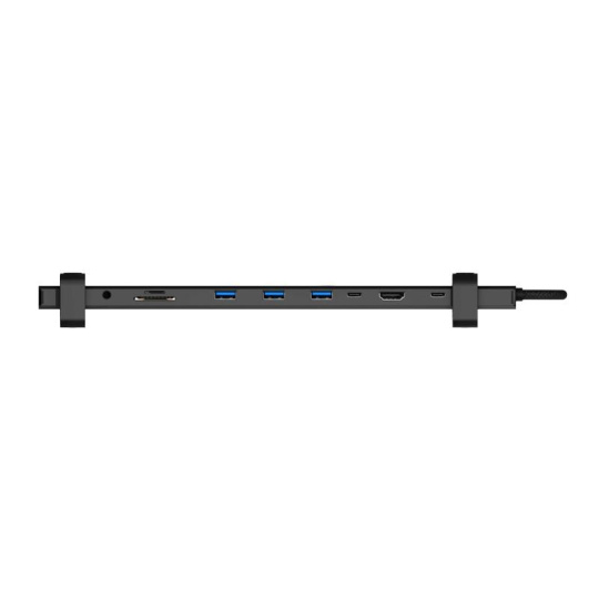 Prakticky tvarovaná USB-C dokovacia stanica "Multi10in1" pre pripojenie až 10 periférií (2x USB-C, 1x HDMI, 3x USB-A, 3.5 mm jack, RJ45 Gigabit Ethernet. SD karta, MicroSD karta).
