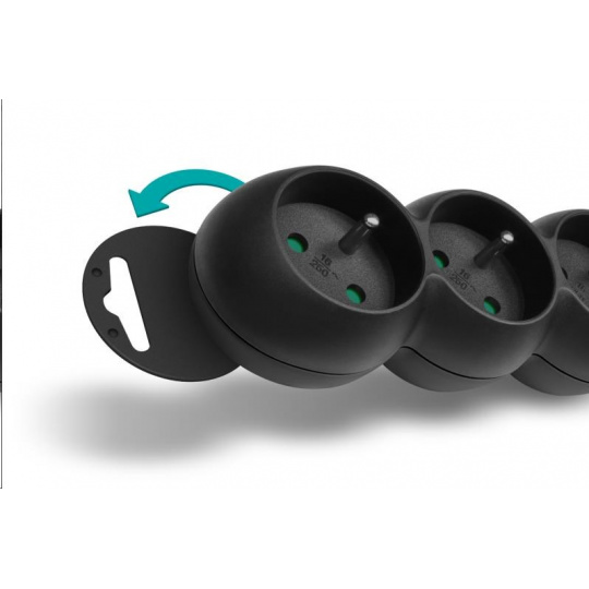 Predlžovací prívod 230 V je vybavený hlavným sieťovým vypínačom, ktorý pri vypnutí úplne odpojí všetky pripojené spotrebiče od napájania súčasne. Ďalšou funkciou je ochrana všetkých zásuviek pred deťmi - zásuvky sú prístupné len vtedy, keď sú obe vidlice vložené súčasne, takže ich nemožno vložiť jednotlivo, napr. iba skrutkovač alebo pletacie ihlice. Vďaka otočeniu zásuviek o 45° je možné používať aj objemnejšie napájacie adaptéry alebo uhlové zástrčky. Výsuvná slučka v hornej časti zásuvkového modulu umožňuje zavesenie alebo pevnú inštaláciu na stenu (napr. v dielňach a garážach). Výrobok bol testovaný a certifikovaný európskym skúšobným centrom, spĺňa najprísnejšie bezpečnostné požiadavky a najnovšie normy a umožňuje pripojenie spotrebičov s celkovou spotrebou energie až do 2500 W.