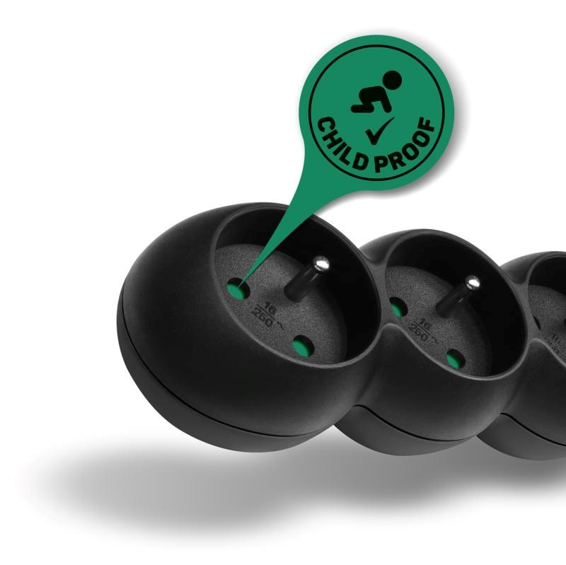 Prolongovací káblový prívod na 230V je vybavený hlavným sieťovým vypínačom, ktorý pri vypnutí úplne odpojí od prívodu elektrickú energiu všetkým zapojeným spotrebičom naraz. Extra výbavou je detská ochrana všetkých zásuviek – zásuvky sú prístupné iba v prípade zasunutia oboch vidlíc naraz, teda nie je možné zasunúť jednotlivé, napríklad skrutkovač alebo pletaciu ihlicu. Vďaka pootočeniu zásuviek o 45° je možné používať aj objemnejšie napájacie adaptéry alebo uhlyové koncovky. Vysúvateľné očko v hornej časti zásuvkového modulu umožňuje zavesenie alebo pevnú inštaláciu na stenu (s výhodou využijete napr. v dielňach a garážach). Výrobok bol testovaný a certifikovaný v euróskom testovacom centre a spĺňa najprísnejšie bezpečnostné požiadavky a najnovšie normy, takže umožňuje zapojenie spotrebičov s celkovým príkonom až 2300 W.