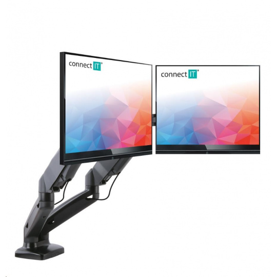 CONNECT IT TwinArm stolový držiak pre 2 monitory, 30 rokov záruka, ČIERNA