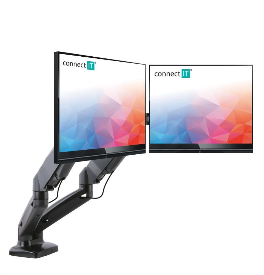 CONNECT IT TwinArm stolový držiak pre 2 monitory, 30 rokov záruka, ČIERNA
