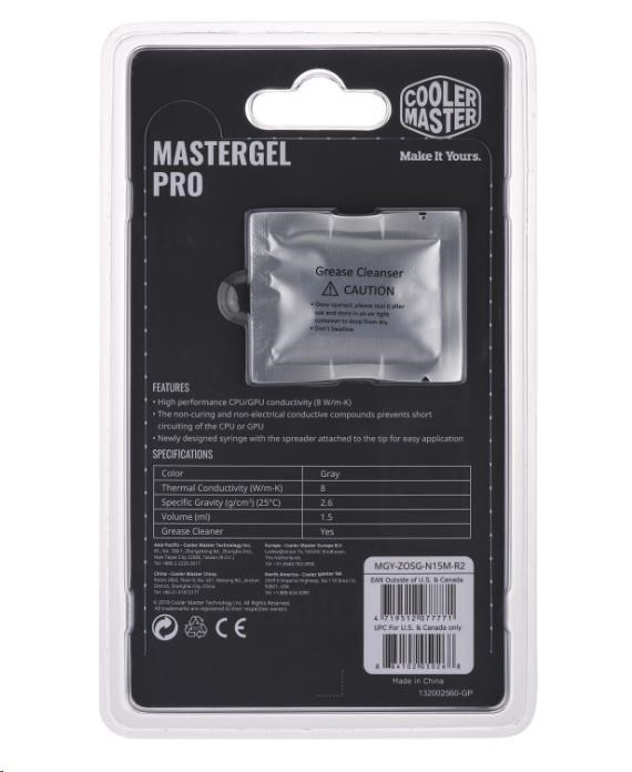Tepelná pasta Cooler Master pre CPU Master Gel Pro V2, tep. vodivosť 8 W.m, 1.5 ml, 4 g, sivá