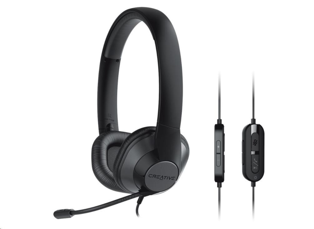 Creative HS-720 V2 má všetko pre pracovné telefonáty: mikrofón s potlačením šumu, odozvu mikrofónu na kontrolu hlasitosti a integrované diaľkové ovládanie s tlačidlom ztlmenia mikrofónu a príjmu hovoru.