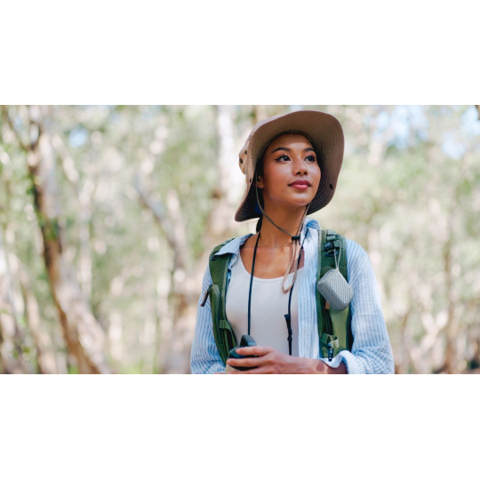 MUVO FLEX je navrhnutý na vonkajšie použitie, má certifikáciu IP67 a je ľahký 200 g. Tento kompaktný reproduktor sa vmestí do väčšiny priehradiek vášho batohu.