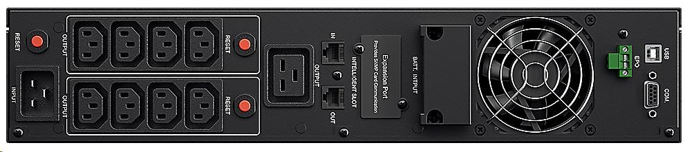 | Dodávka zahŕňa | UPS, Používateľská príručka, Rackmount koľajnice, Úchyty na montáž do stojana, Pripojovací kábel (2), Telefónny kábel, Kábel USB, Sériový kábel (RS232), M5X8L (8), M5X12L (12), Plastové podložky (8) Zaslepovacia doska (12), CD so softvérom PowerPanel® Business Edition. Gumové podložky pre UPS(12) |