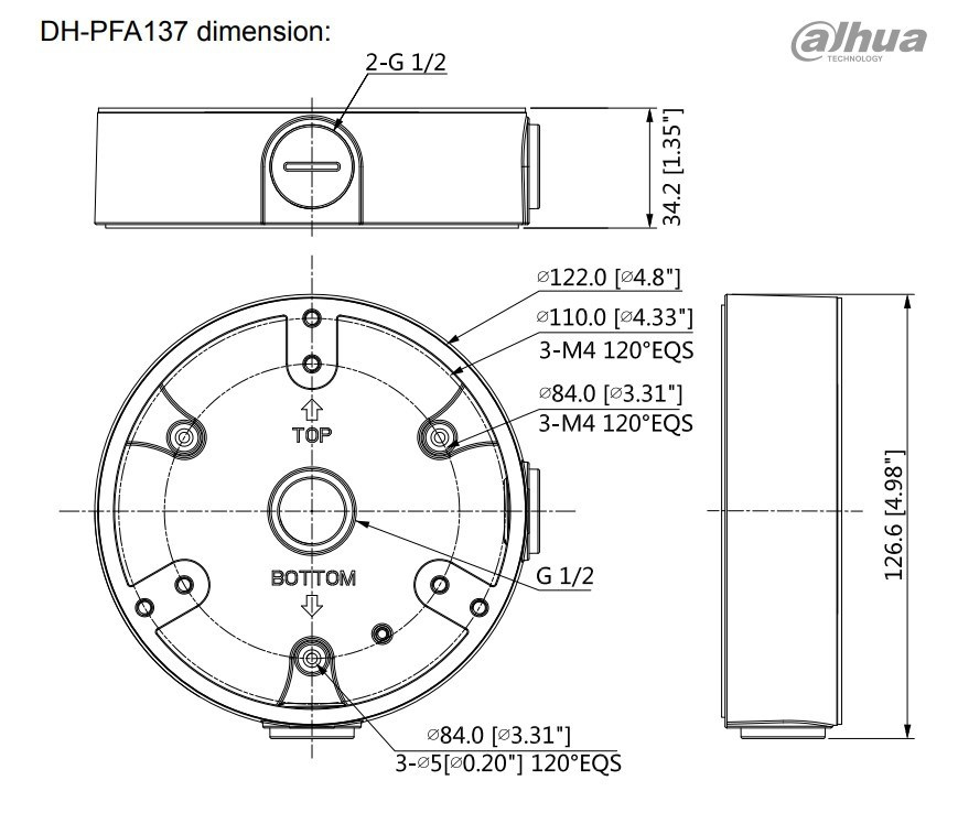 Dahua PFA137, instalační krabice pod dome kamery