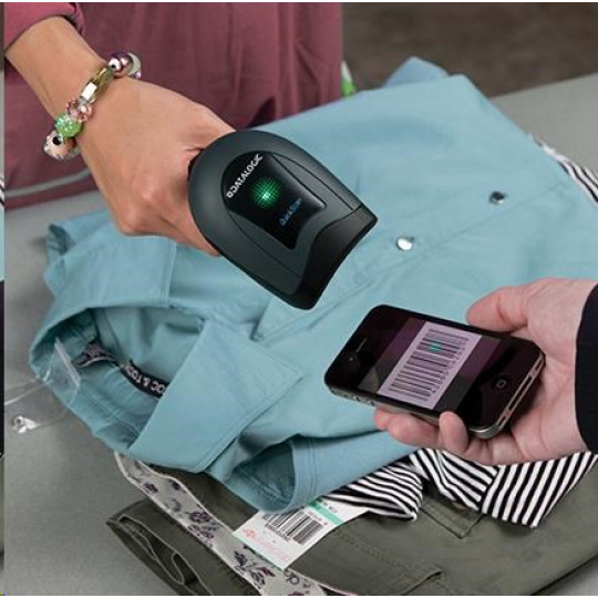 bezdrôtový skener, maloobchodný, 1D, lineárny imager, 400 skenov/s., multirozhranie (RS232, KBW, USB), bezdrôtový, 433 MHz, IP42, vrátane: kábel (USB), nabíjacia/vysielacia kolíska, farba: čierna